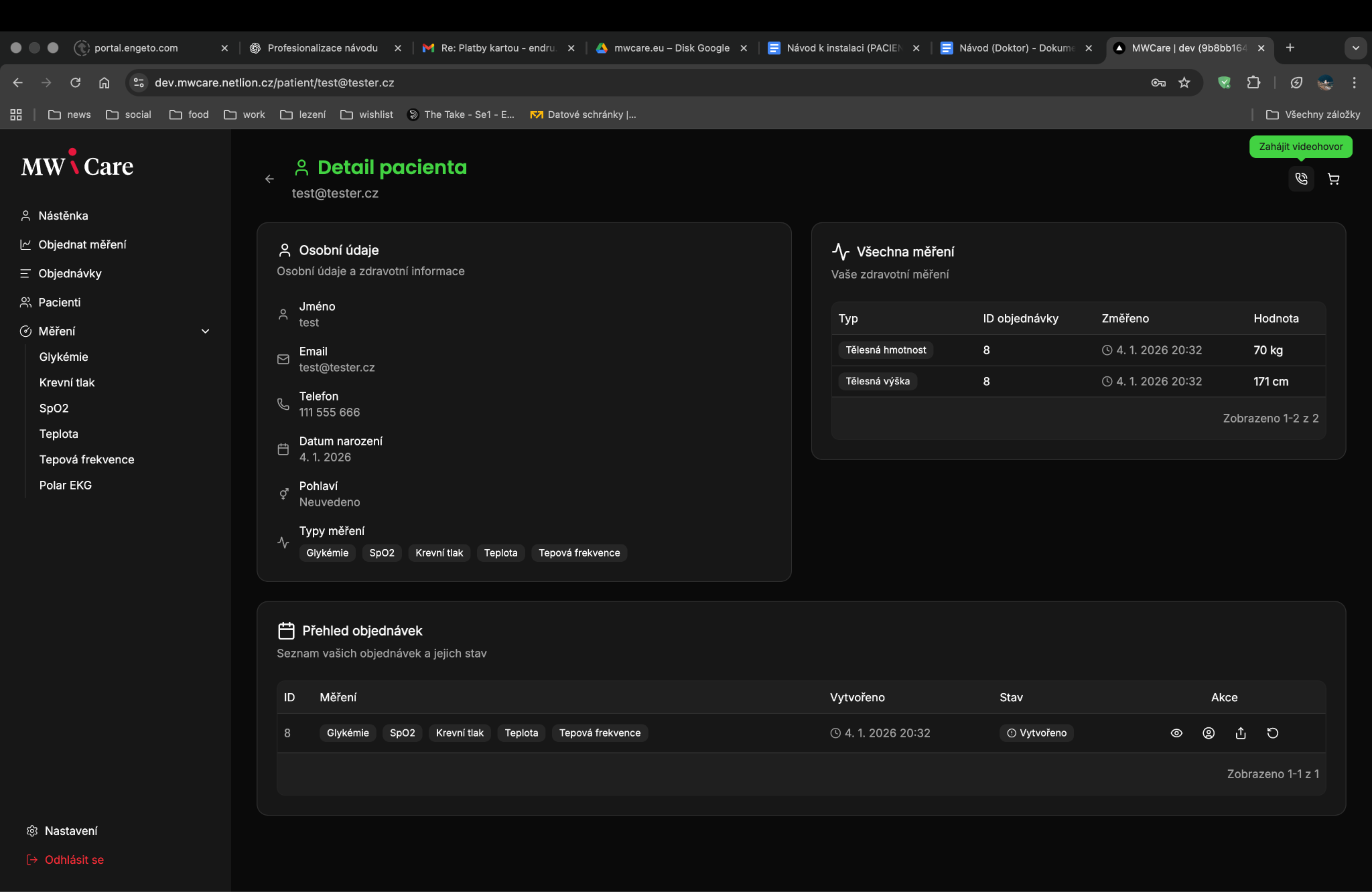 - Ve vašem prohlížeči se vám otevře stránka s kartou pacienta v MWC Platform