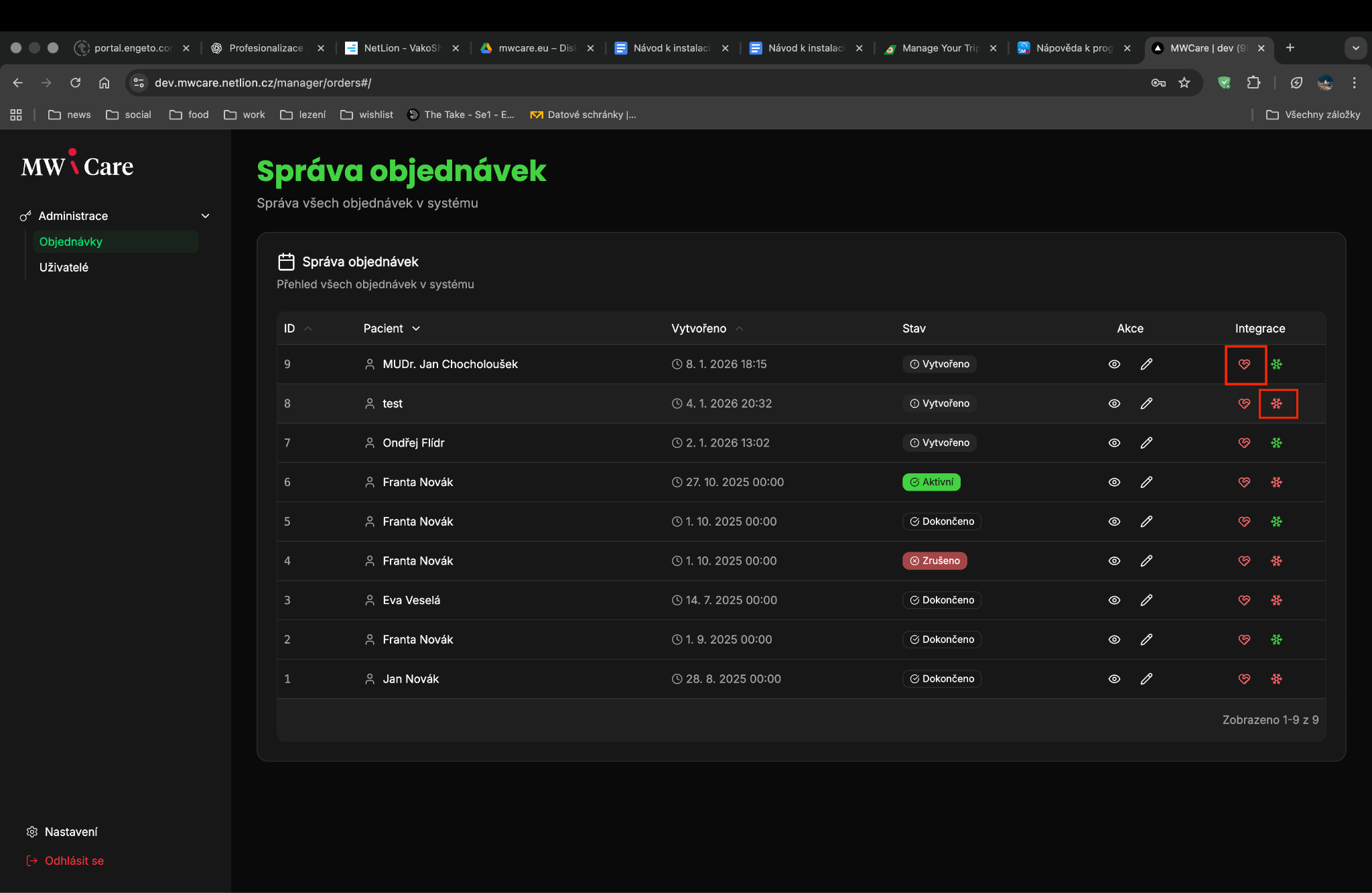 U dané objednávky klikněte na ikonu srdce a poté na Přihlásit do iHealth.