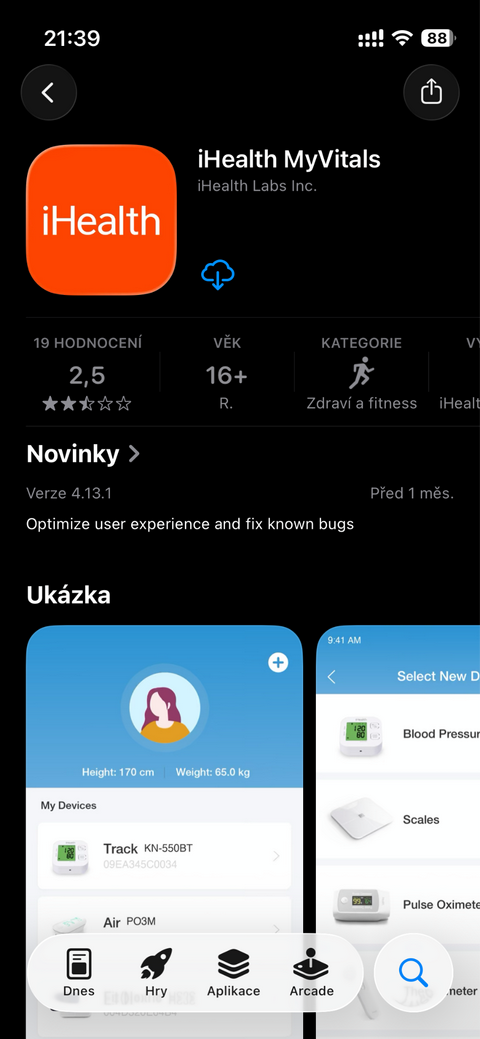 https://play.google.com/store/apps/details?id=com.ihealthlabs.MyVitalsPro - Po instalaci si vytvořte účet.